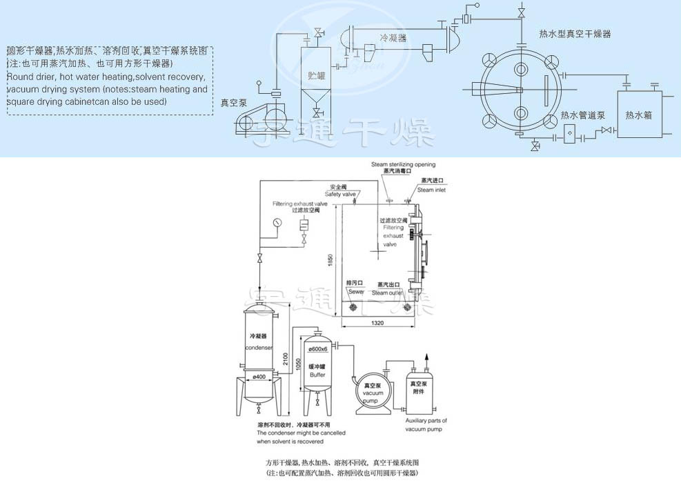 該設(shè)備適用于在高溫下易分解、聚合和變質(zhì)的熱敏性物料的低溫干燥,被廣泛地采用在制藥、化工、食品、電子等行業(yè)。