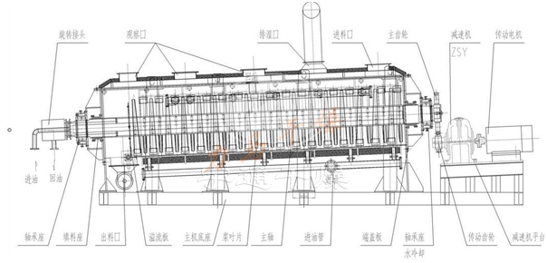 空心槳葉干燥機(jī)分為熱風(fēng)式和傳導(dǎo)式。熱風(fēng)式即通過熱載體(如熱空氣)與被干燥的物料相互接觸并進(jìn)行干燥,在傳導(dǎo)式中熱載體并不與被干燥的物料直接接觸,而是熱表面與物料相互接觸。傳導(dǎo)式的優(yōu)點是物料不易被污染,排氣量小,熱效率高,體積相對小,有利于節(jié)約能源及防止空氣污染。