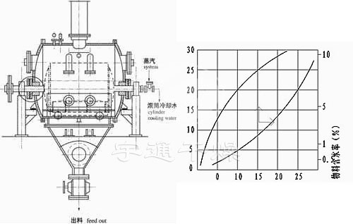 液體或泥漿狀物料在水蒸汽或其它熱載體加熱的滾筒表面形成薄膜,并在滾筒轉一圈的過程中便被干燥完畢,利用刮刀把產品刮下來,露出滾筒表面再次與原料接觸形成薄膜進行干燥。
