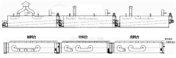 1、將上表中同一規格的網帶干燥機加料臺、中間臺、出料臺三臺串聯使用,保證蔬菜脫水干燥生產工藝要求,顯著提高產量,有效 保證產品的質量。