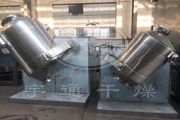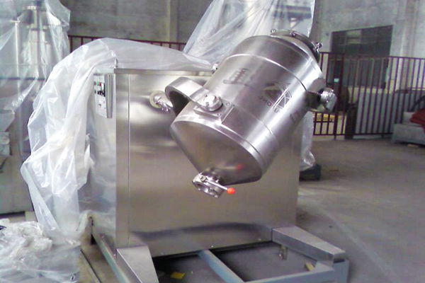 三維運動混合機在運行中,由于混合桶體具有多方向運轉動作,使各種物料在混合過程中,加速了流動和擴散作用,同時避免了一般混合機因離心力作用所產生的物料比重偏析和積累現象,混合無死角,能有效確?;旌衔锪系募哑焚|。