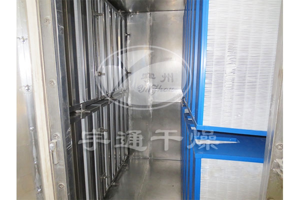經(jīng)過初、中效過濾的環(huán)境空氣由干燥系統(tǒng)引風機吸入熱風空氣,與蒸汽換熱后產(chǎn)生的熱風進入閃蒸干燥主機,與經(jīng)過螺旋加料器送入干燥主機的待干燥濾餅,在干燥主機內(nèi)完成傳熱傳質(zhì)的干燥過程,氣固混合物由旋風分離器和布袋除塵器分離,物料被從干燥系統(tǒng)氣體內(nèi)分離出來,排出干燥系統(tǒng),尾氣由引風機排入大氣。
