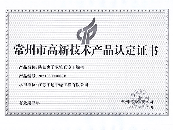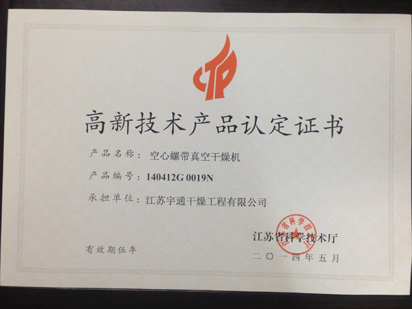 高真空耙式干燥機(jī)高新認(rèn)定