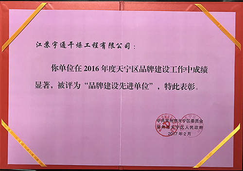 江蘇宇通干燥工程有限公司榮獲“品牌建設先進單位”稱號
